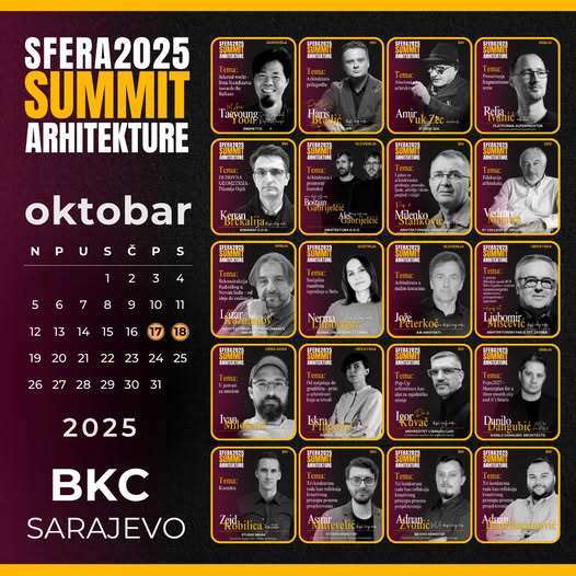 Događaj koji na jednom mjestu okuplja arhitekte iz regije i svijeta, i ove godine će ugostiti eminentna imena arhitekata. Kroz predavanja i komunikaciju publika će imati priliku slušati vrhunske govornike sa svjetske arhitektonske scene.