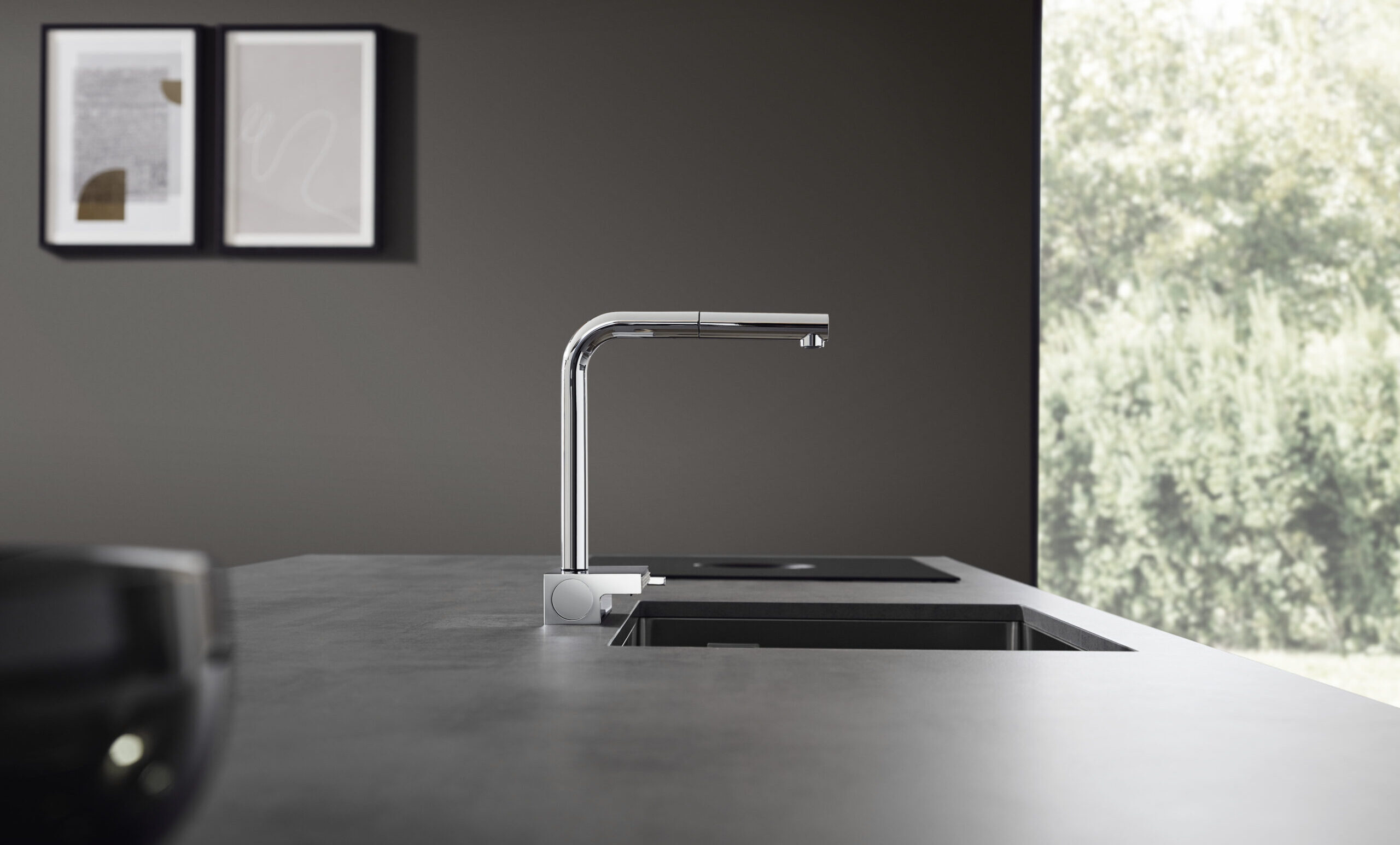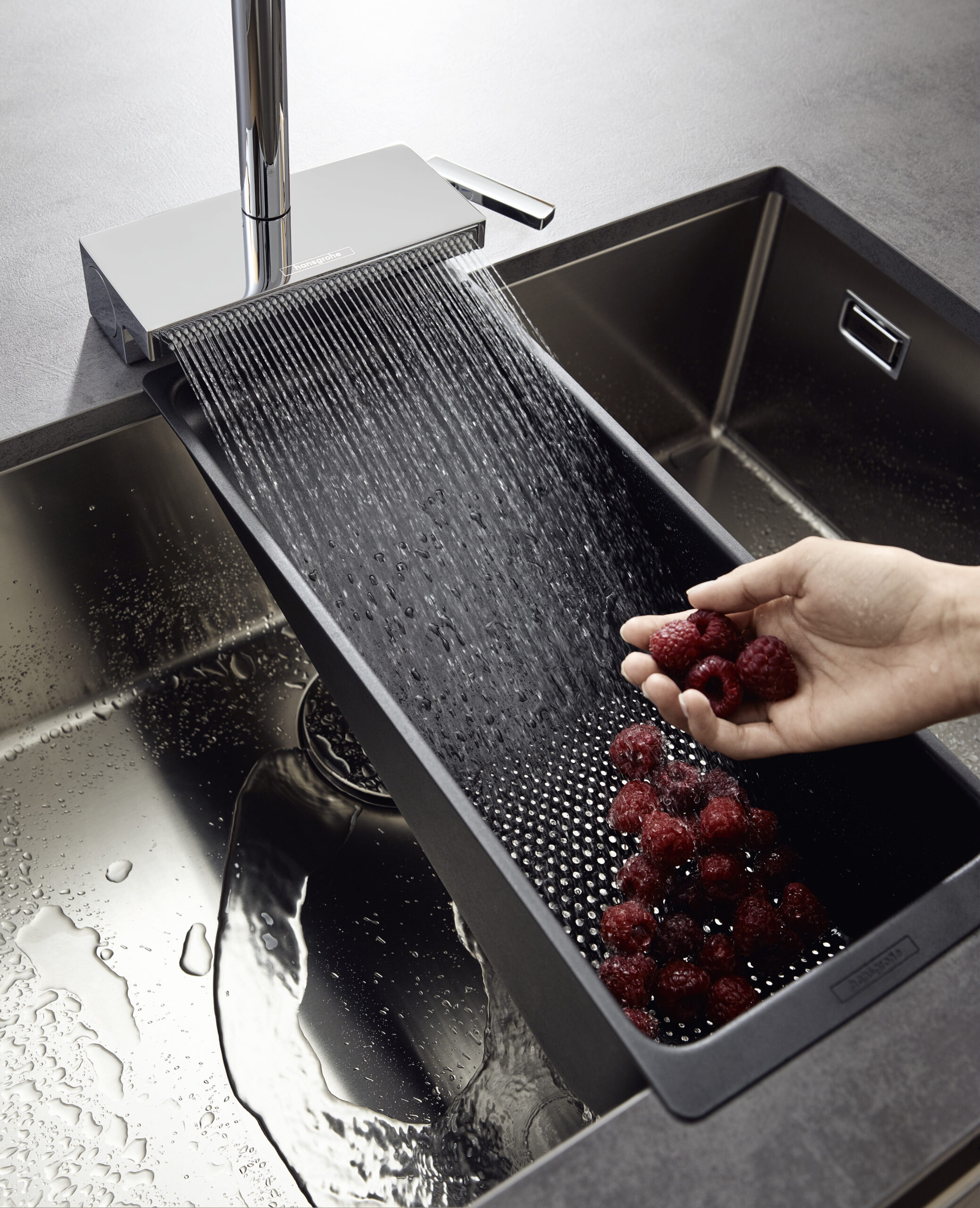 Kombinacija ravne podloge i upečatljivo zakrivljenog lučnog izljeva (opcionalno dostupnog i kao kutni izljev u obliku slova L) čini ovaj vodeći proizvod tvrtke hansgrohe dizajnerskim arhetipom. Avangardni dizajn ističe se u raznim okruženjima i djeluje kao vizualni vrhunac u modernim kuhinjama. Dostupne su tri ekskluzivne završne obrade: krom, nehrđajući čelik i mat crna.