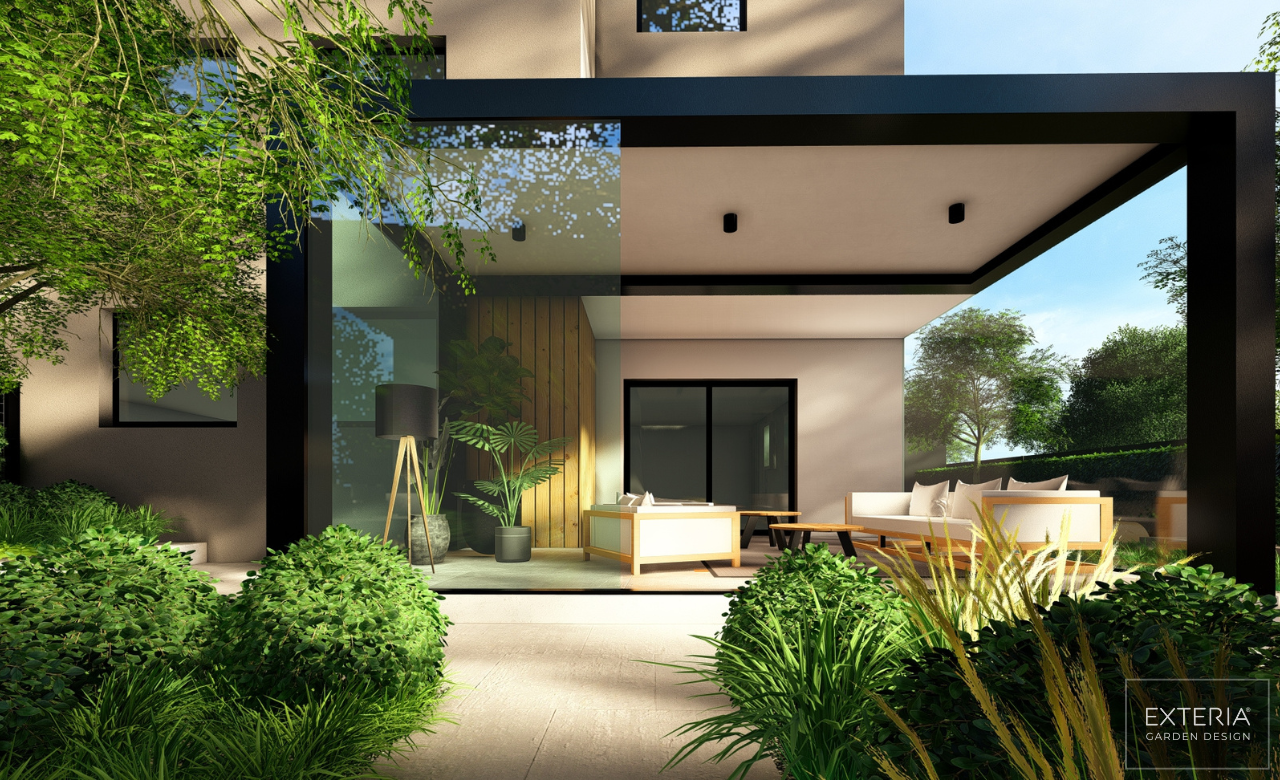 Prostor sam strukturirala u nekoliko zona koje omogućuju različite aktivnosti na otvorenom – od sunčališta za opuštanje i odmor do udobnog i ozelenjenog kutaka za sjedenje, koji pruža mir i privatnost. Vanjska terasa s kliznim staklenim stijenama i bioklimatskom pergolom, pozicionirana kao središnji element dvorišta, pruža zaštitu tijekom nepovoljnih vremenskih uvjeta te omogućuje kontinuirano korištenje prostora u svim sezonama.