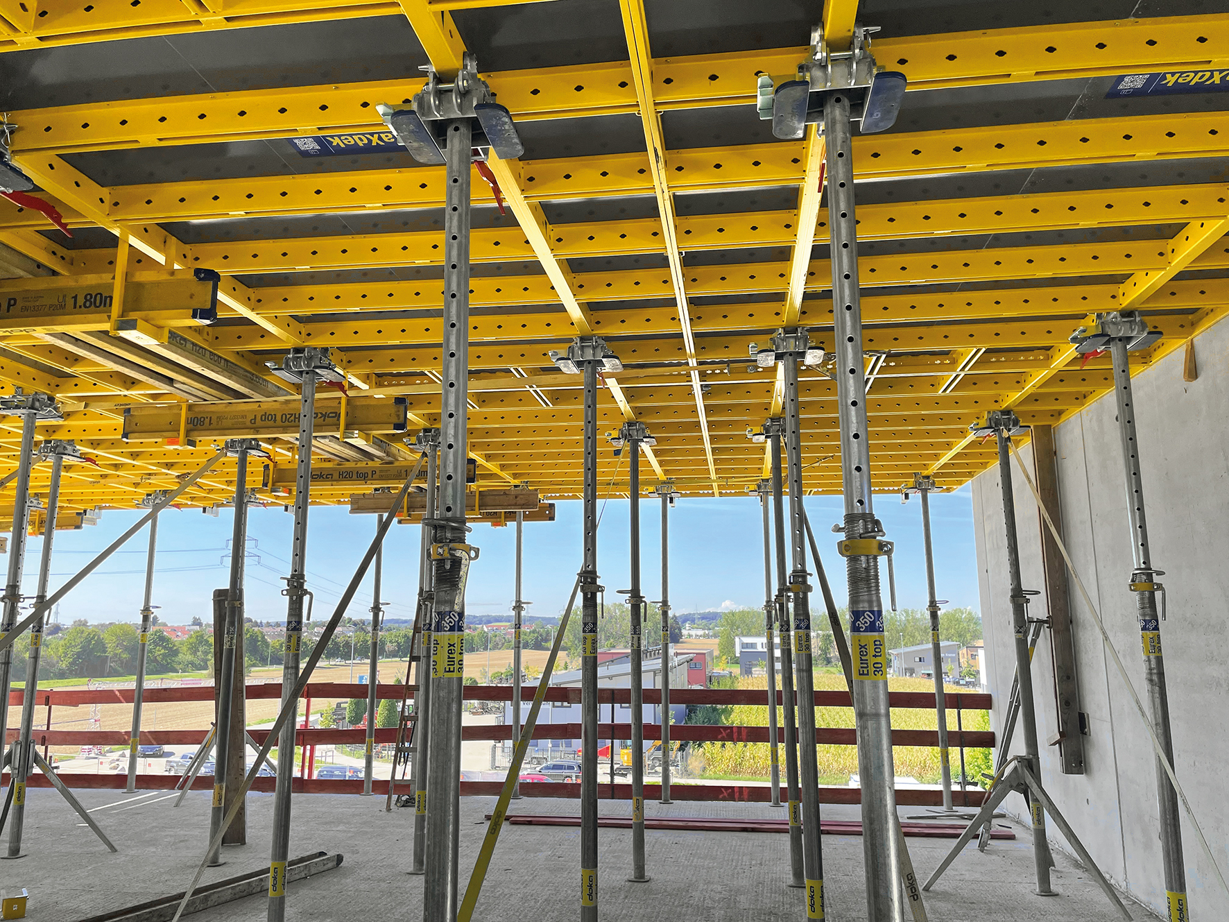 Kompaktni, vruće pocinčani čelični okvir, visine svega 12 cm, jamči dug vijek trajanja proizvoda čime se uz optimizaciju transporta dodatno smanjuje ugljični otisak. Tri projekta u Njemačkoj također profitiraju zahvaljujući prednostima sustava DokaXdek. Zsolt Mikuska, voditelj gradilišta u podružnici tvrtke Hafner Hoch- und Tiefbau GmbH u Augsburgu, pojašnjava kako su tražili posebno učinkovito rješenje za izgradnju novog četverokatnog poslovnog objekta s podzemnom garažom u Neusäßu. Projekt je zahtijevao moderan, čist izgled vidljivog betona, što je i omogućeno zahvaljujući značajkama sustava DokaXdek. Mikuska navodi: „Postavljanje i premještanje oplate izuzetno je brzo i jednostavno uz nove oplatne stolove. A zahvaljujući maloj visini samih oplatnih stolova, smanjeni su i troškovi prijevoza.”