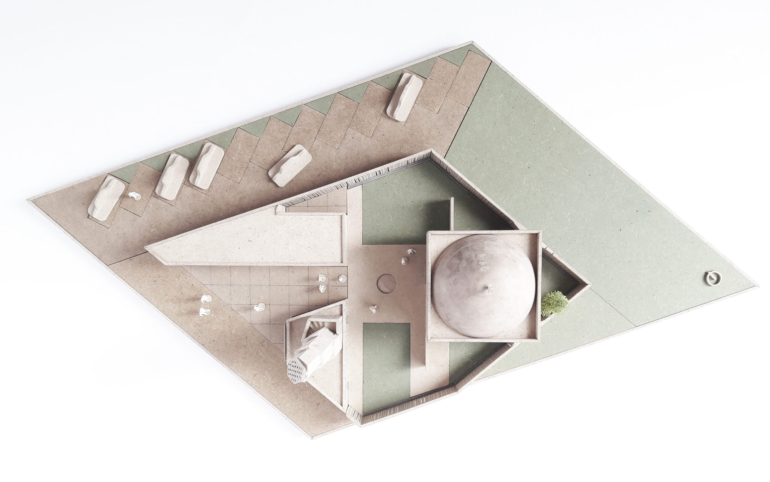 Takav pristup omogućio je potpunu kontrolu nad svakim segmentom teksture i plastike kupole, pri čemu se svaki dio izvodio s pažnjom koja nadilazi čistu izvedbenu funkciju. Umjesto serijski proizvedene geometrije, nastaje jedinstvena, prostorno osjetljiva struktura, u kojoj se svaka neravnina, zarez i mikroreljef bilježe kao svjedočanstvo ljudske prisutnosti i pažnje.