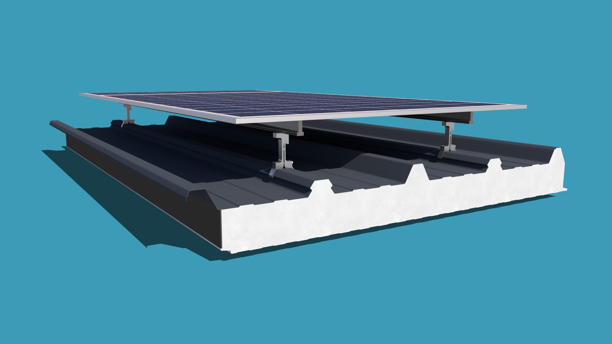 Aluminijski nosači solarnih modula oslanjaju se na geometriju posebno oblikovanog rebra krovnog panela, čime se omogućava prenos opterećenja sa solarne konstrukcije na krovni sistem. Zahvaljujući posebno projektovanoj profilaciji, ovi paneli posjeduju povećanu statičku nosivost u odnosu na standardne krovne sendvič panele, što dodatno doprinosi sigurnom prihvatu opterećenja od solarnih modula i njihovih nosača.
