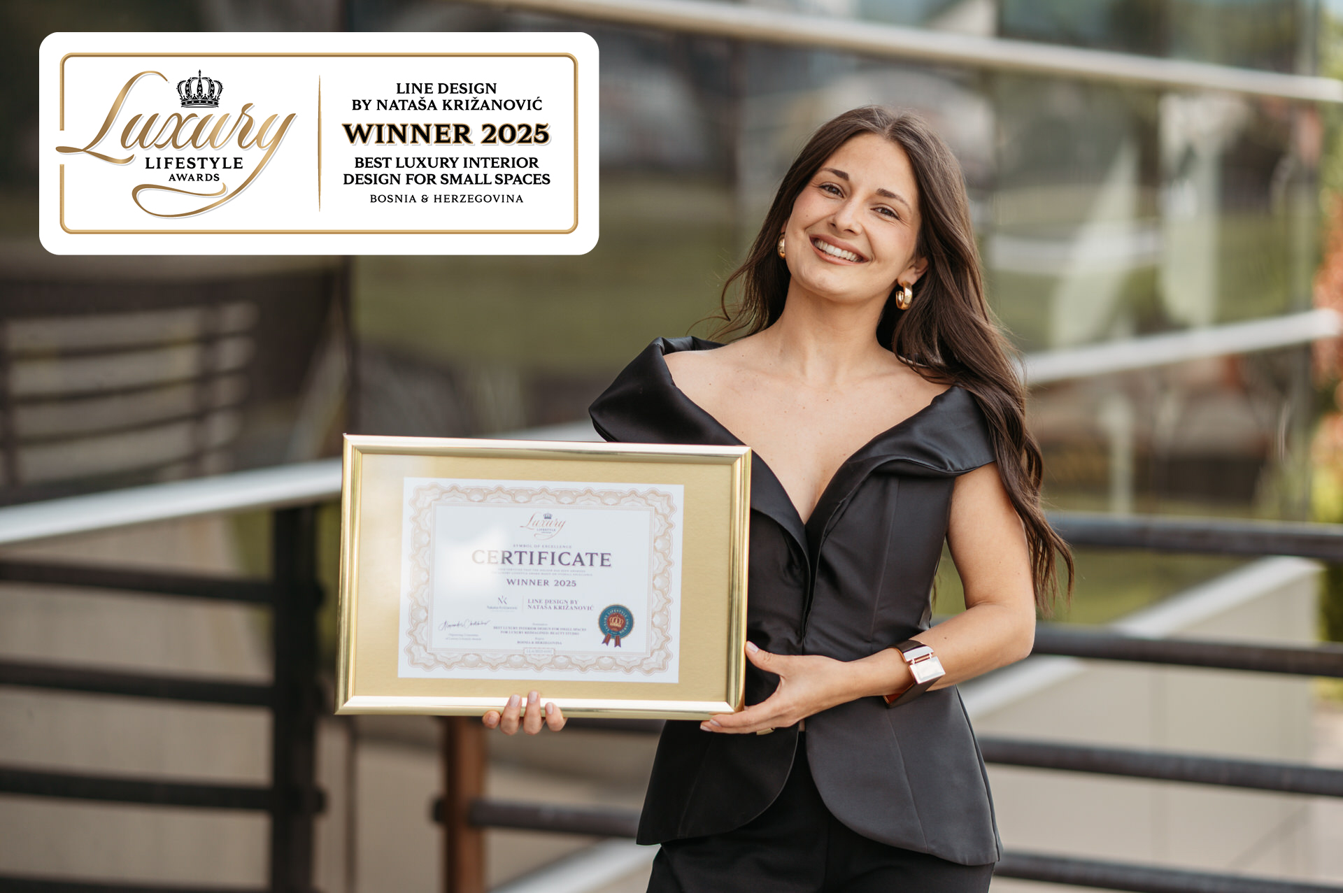 Line Design, studio za interijere koji je osnovala diplomirana inženjerka arhitekture i dizajnerica Nataša Križanović, dobitnik je priznanja Luxury Lifestyle Awards 2025 u kategoriji Najbolji luksuzni interijer za male prostore u Bosni i Hercegovini. Nagrada je dodijeljena za izvanredan projekt Luxury Reimagined: Beauty Studio, kojim je dotrajali poslovni prostor u potpunosti pretvoren u sofisticirani i luksuzni kozmetički salon.