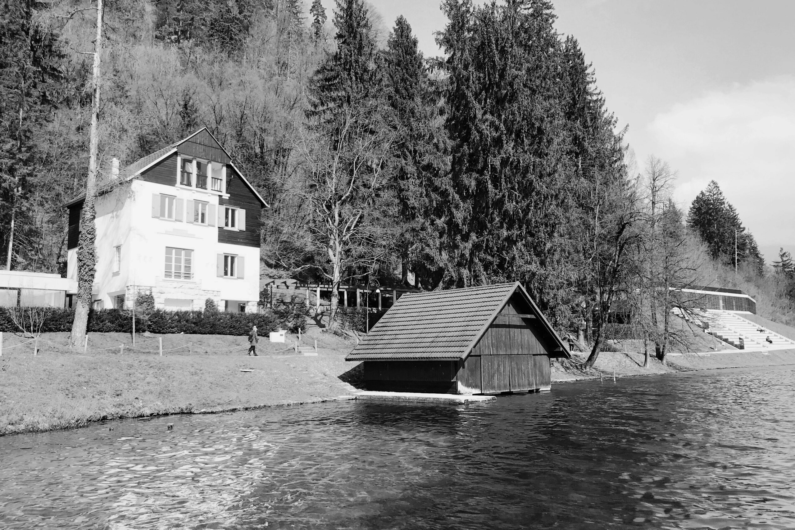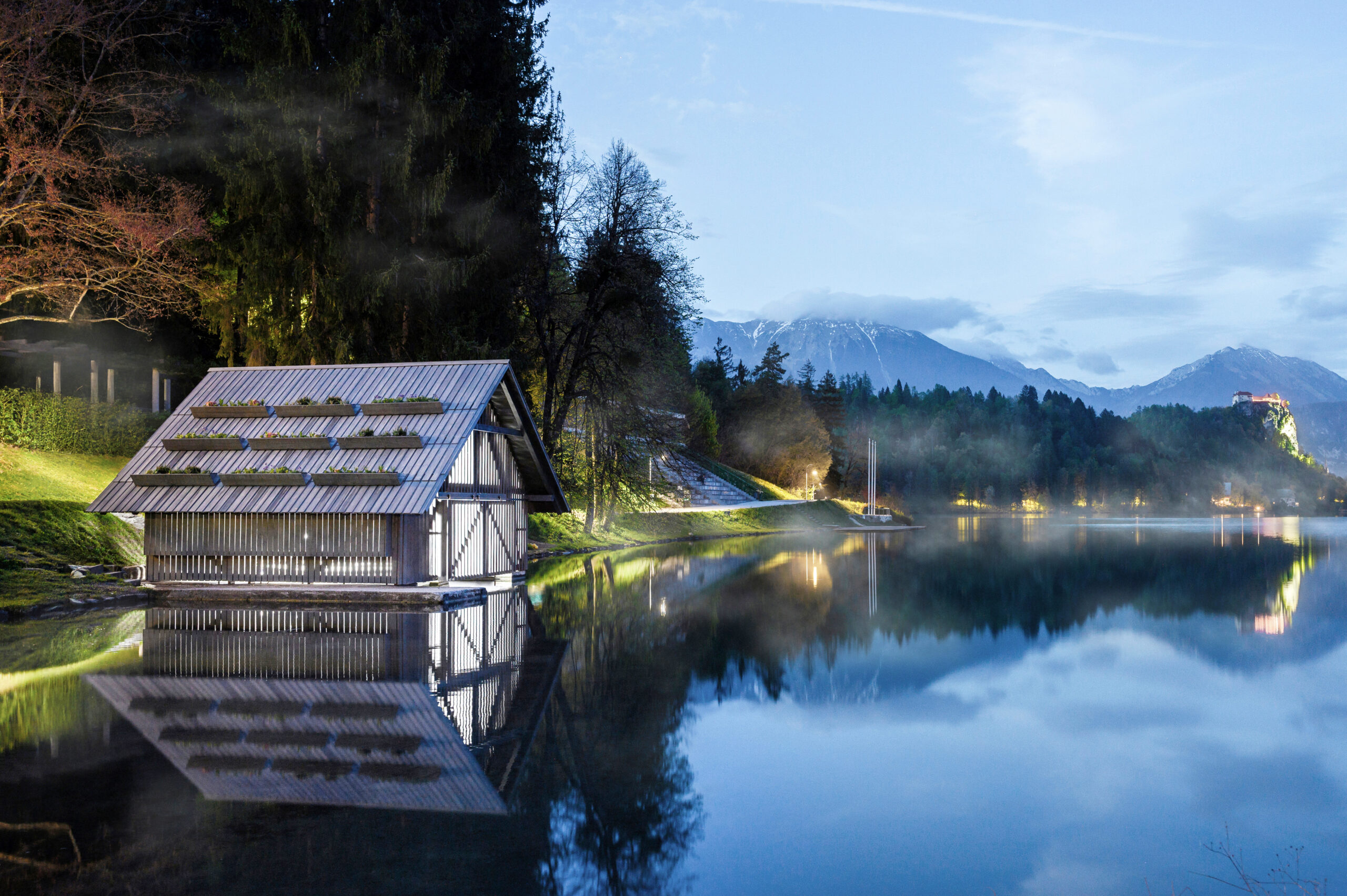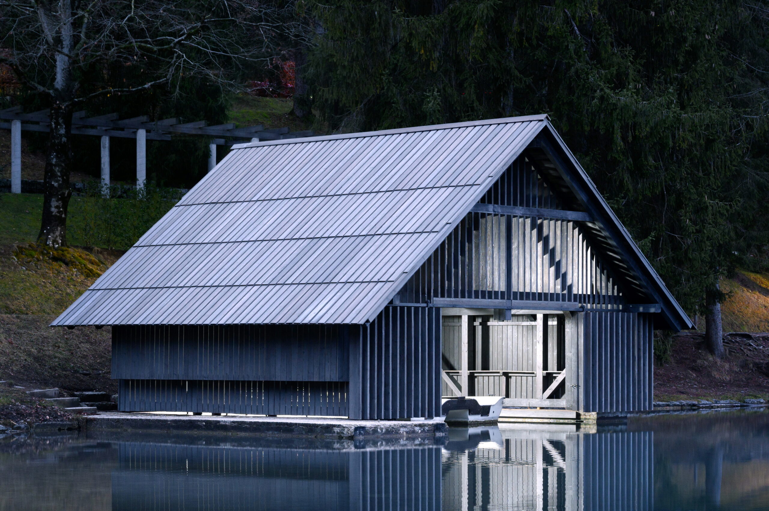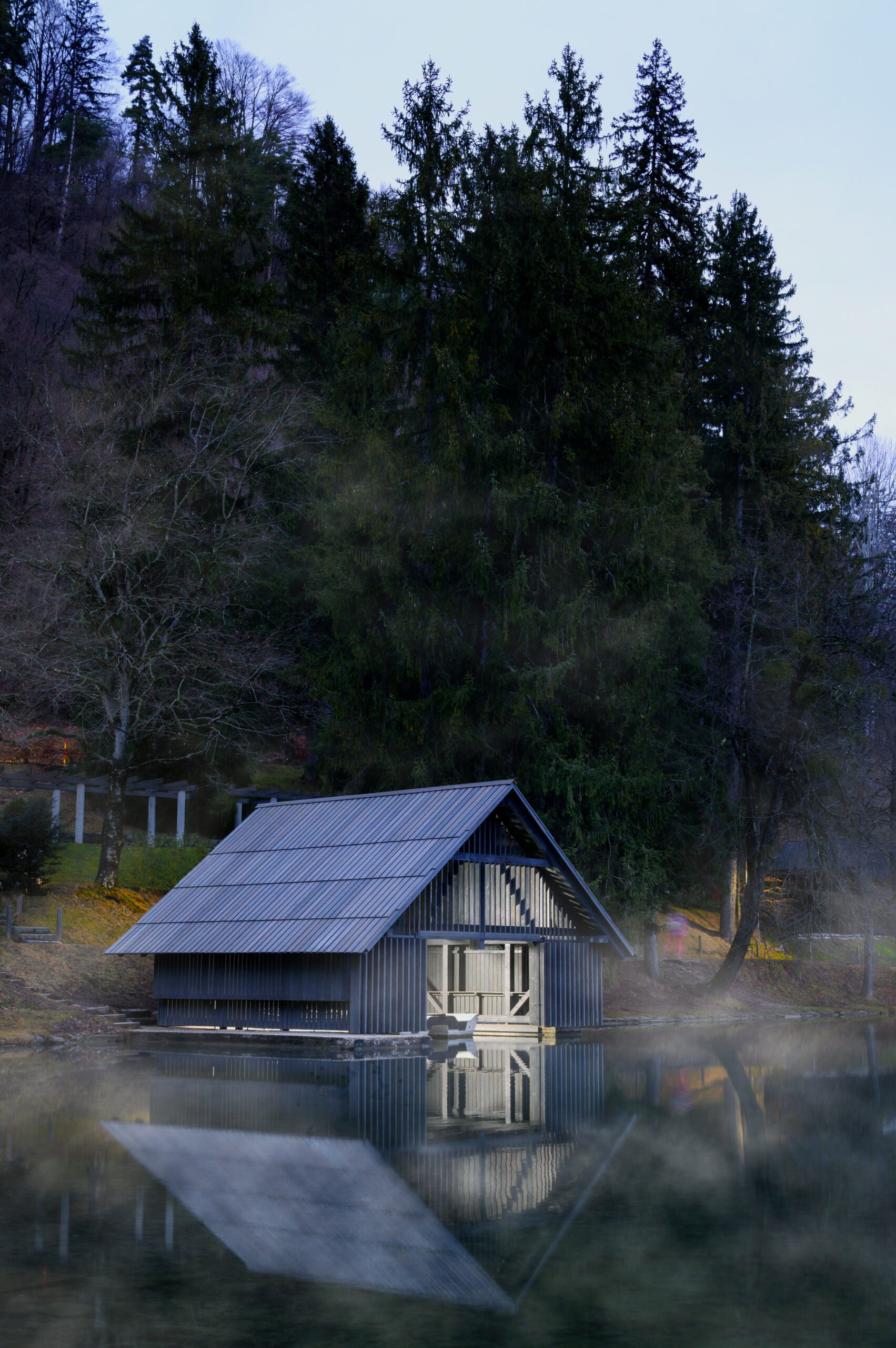 Čuvarnica za čamce Zaka, smještena na mirnom zapadnom rubu Bledskog jezera, skromna je, ali značajna struktura koja govori o slojevitom odnosu arhitekture, pejzaža, ekologije i javnog znanja. Bled je jedno od najprepoznatljivijih slovenskih alpskih odmarališta — globalno poznat po kristalnom jezeru, dramatičnoj crkvi na ostrvu i Julijskim Alpama — te predstavlja mjesto kontinuiranog prirodnog posmatranja i brige o okolišu. U ovom osjetljivom kontekstu, arhitektonski pristup nije bio da se projektuje nešto sasvim novo, već da se revitalizira s poniznošću i namjerom.