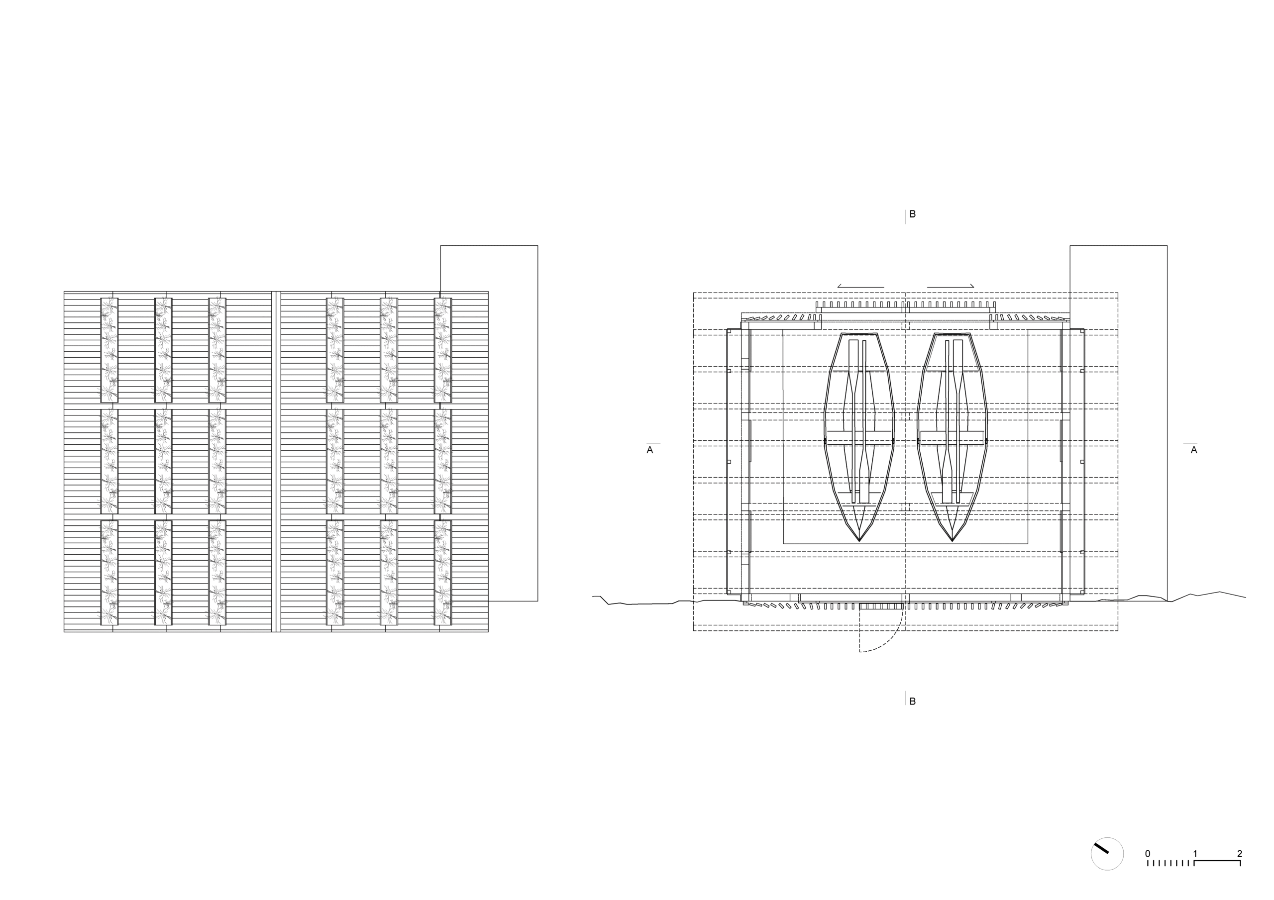 Ono što izdvaja ovaj projekat jeste njegov eksperimentalni i edukativni krovni sistem. Prepoznajući stratešku poziciju zgrade i njenu naučnu namjenu, arhitekti su predložili ugradnju niza drvenih posuda na dvovodnom krovu, od kojih svaka sadrži lokalne alpske biljne vrste. One nisu dekorativne; dio su živog eksperimenta prirodne filtracije i ekološke edukacije. Svaka posuda ispunjena je slojevitim filtracijskim materijalima — kamen, šljunak, pijesak, zemlja i kokosova vlakna — kroz koje se polako pumpa i filtrira jezerska voda prije nego što navodnjava biljke. Voda cirkuliše kroz posude, oponašajući prirodne filtracijske sisteme, vraća se čišća i podržava rast vegetacije. Sve korištene biljne vrste autohtone su u alpskom području, naglašavajući biodiverzitet regije i demonstrirajući kako jednostavni prirodni sistemi mogu imati mjerljive ekološke efekte. Ova vidljiva i funkcionalna zelena infrastruktura poziva na razmišljanje. Pretvara čuvarnicu u edukativni instrument koji ne samo da podržava naučna istraživanja, već i uključuje posjetioce u procese brige o okolišu i pročišćavanju vode. Krov postaje i pejzaž i laboratorij, stapajući izgrađenu formu s ekosistemskom funkcijom.