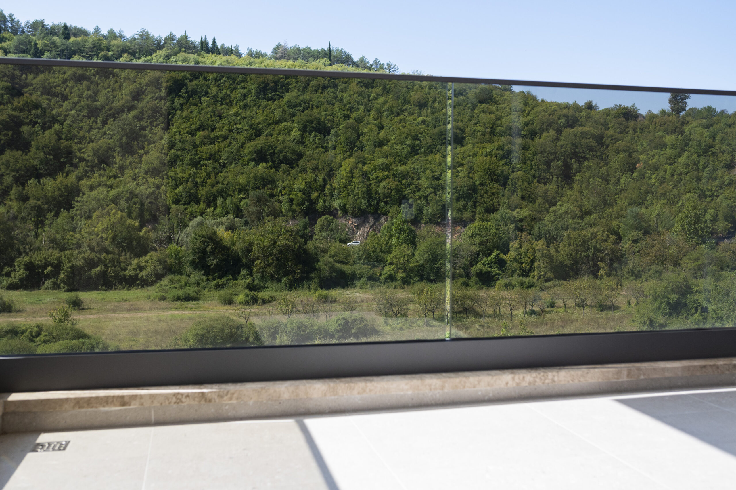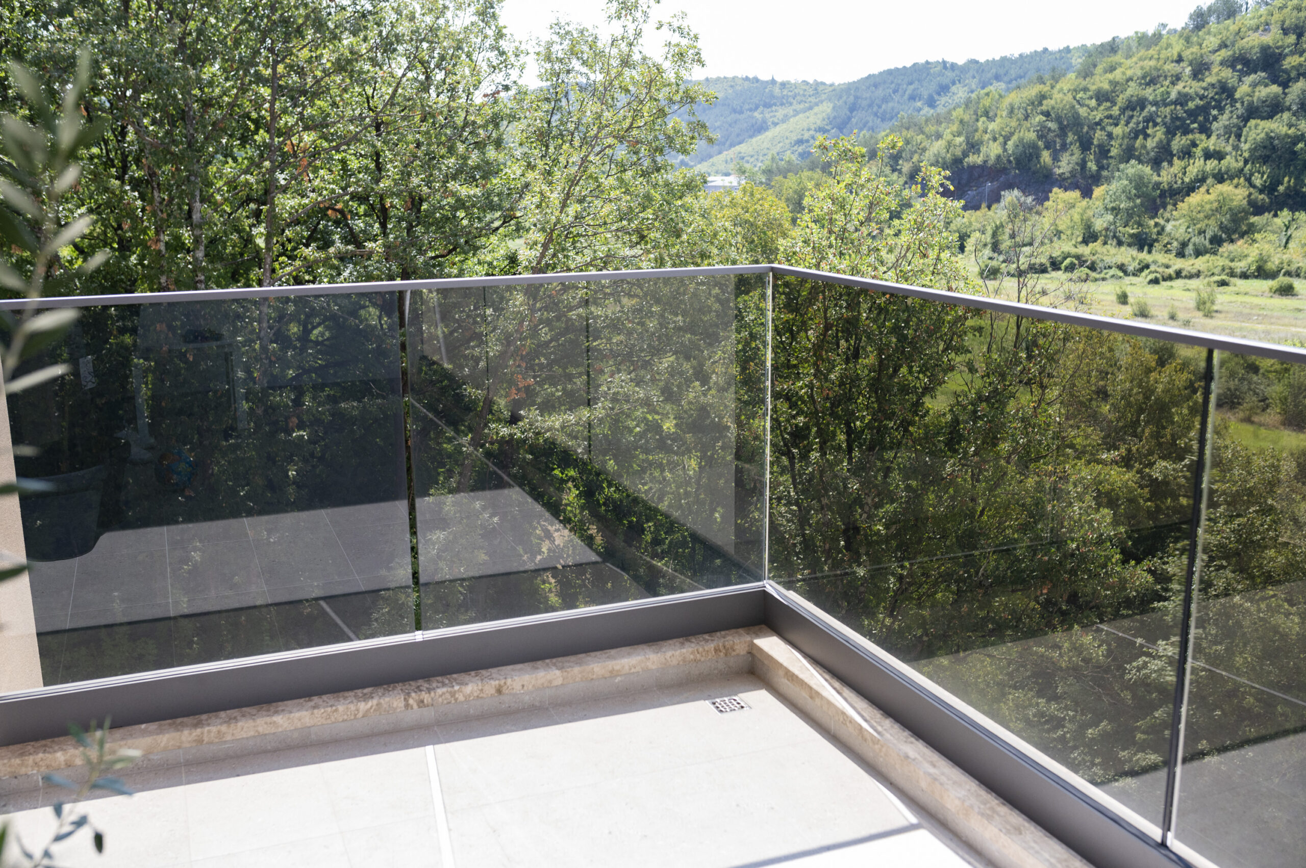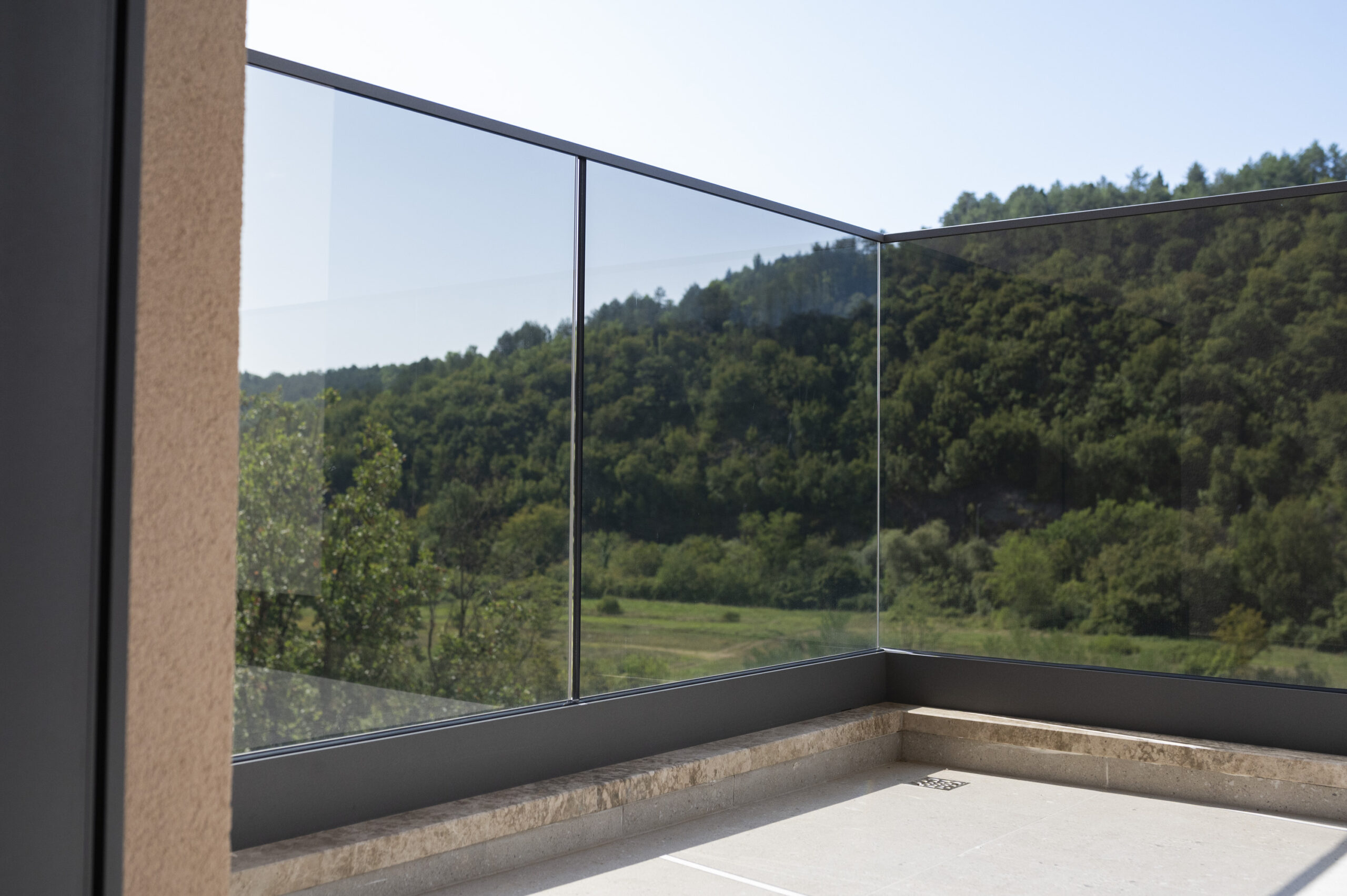 | OP100 (staklena ograda) | Balkoni i lođe | • Minimizirani vertikalni profili – povezana staklena polja s diskretnim spojevima. • Laminirano/kaljeno staklo 17,52 mm certificirano prema EN 12600. |