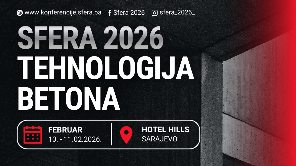 Naučno stručna konferencija i sajam o temi ”Tehnologija betona” održat će se 10. i 11.02.2026. godine u Sarajevu, Hotel Hills.
